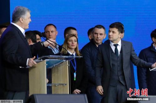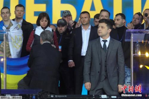 19日,波罗申科与泽连斯基在乌克兰基辅体育场进行竞选辩论。