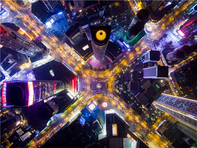 这是南京市中心新街口夜景(2016年1月19日无人机拍摄)。新华社记者 李响 摄