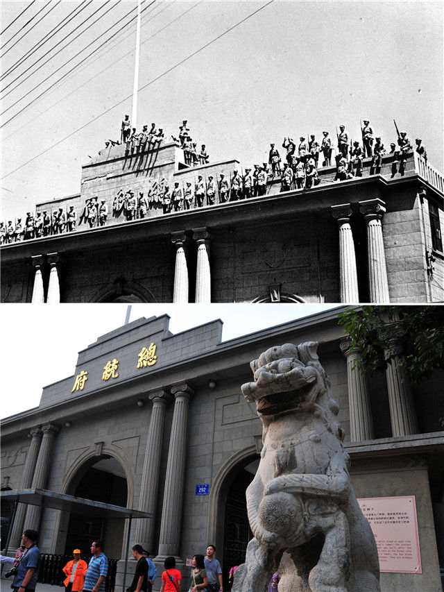 1949年4月23日,南京解放。上图为人民解放军占领南京“总统府”(资料照片);下图为南京“总统府”经过全面整修、扩建,成为面积12万平方米的中国近代史遗址博物馆(2009年8月19日新华社记者韩瑜庆摄)。新华社发