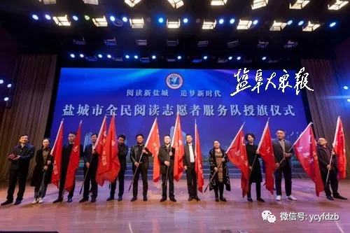 盐城市全民阅读志愿者服务队授旗仪式。(本图片由市图书馆提供)