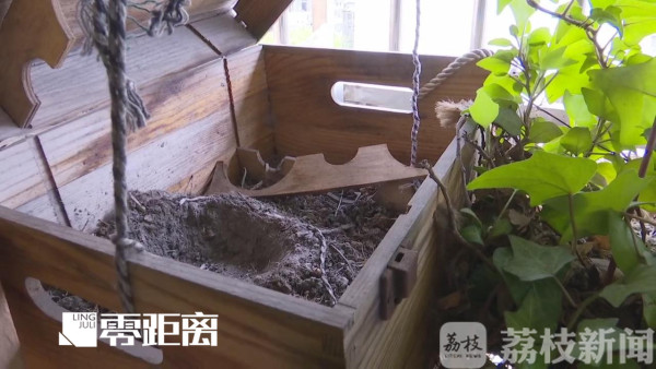 此外,客厅的窗台上也是郁郁葱葱、生机盎然,张先生说,窗台上这只红酒木盒子里有只鹩哥在里头搭了一个土巢,每到傍晚就会上演倦鸟归巢的自然景象,此外下面还有三个用PVC管做的麻雀窝,也是张先生模拟麻雀的生活习性搭建的,如今成了麻雀遮风避雨的温馨家园。