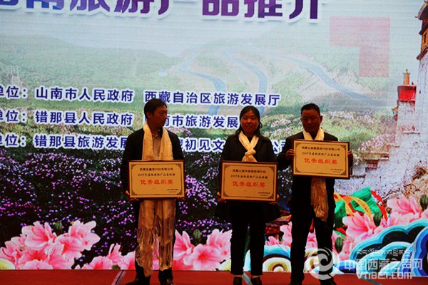 山南市旅游发展局兑现2018年旅行社组团宣传促销补助资金,获奖旅行社代表上台领奖。