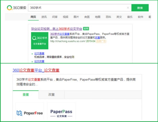 在360搜索“360学术”或“论文查重”,均可进入该平台