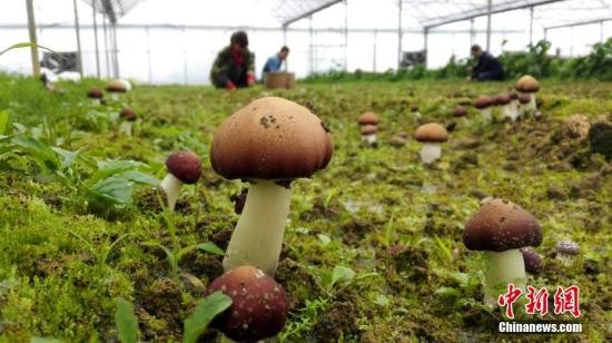 资料图:有机蔬菜种植园农户采摘蘑菇上市。 赵春亮 摄