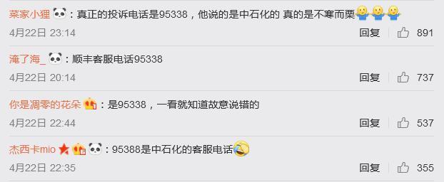 另外,有眼尖的网友发现,该快递员与女客户的聊天中所说的顺丰投诉电话95388,其实是中石化的客服电话,顺丰的真实投诉电话为95338。有网友称“真是不寒而栗”、“故意说错的”。