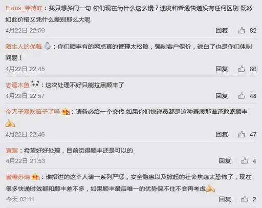 对于被推上风口浪尖的顺丰公司,不少网友提出质疑,称“顺丰网点管理松散”“如果顺丰最后的优势都保不住便不会再用”;也网友表示十分关注事件的后续调查结果,并表示希望能及时公布。
