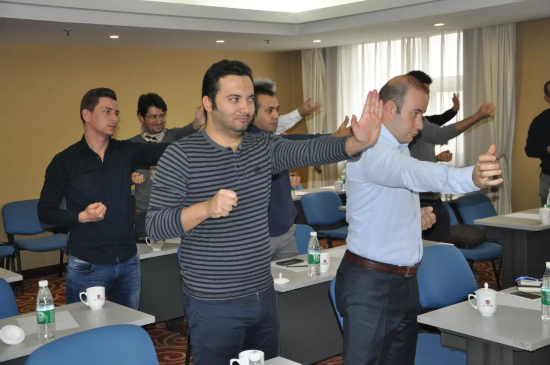 ↑“功夫”是最受欢迎的中国元素之一,图为土耳其代表团成员在中国学习太极拳。