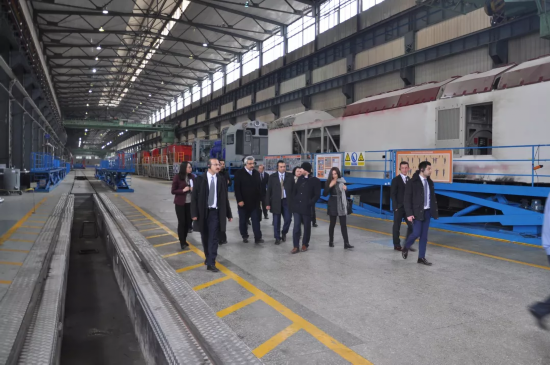 ↑图为土耳其代表团参观中车大连机车车辆有限公司。