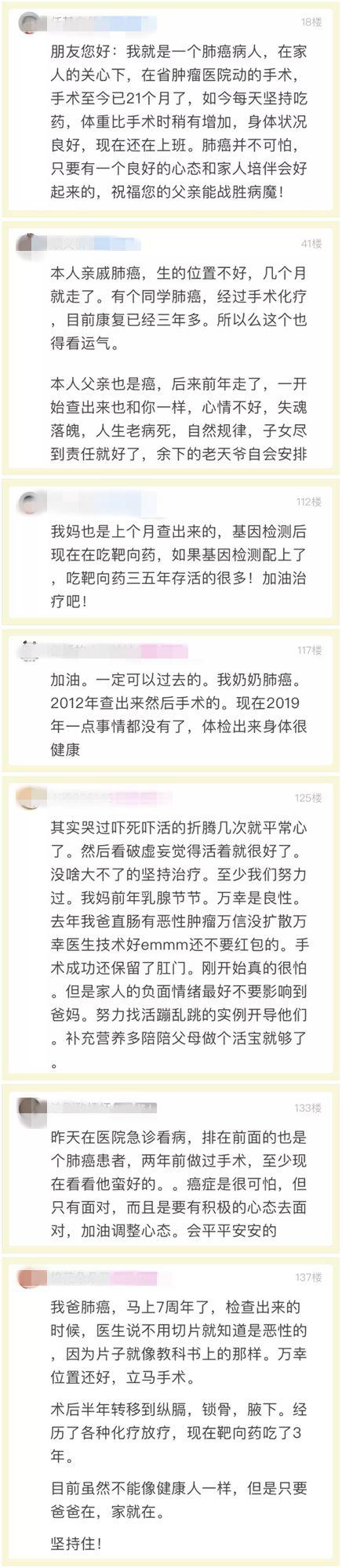 网友“棉花朵朵开”的爸爸患肺癌7年,经历了化疗,坚持吃药,依然健在。