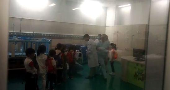 送滨江儿保急诊室里大概来了十多个小朋友,大概有五六个小朋友有出鼻血等轻微伤,还有几个小朋友有玻璃渣划伤的,但均不严重。