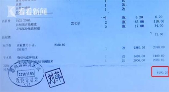 罗先生表示:“当时那个情况下,只有把钱交完医生才会继续做手术。总共这个手术分三次收费,全部加起来的话一共收了六千一百九十多。”