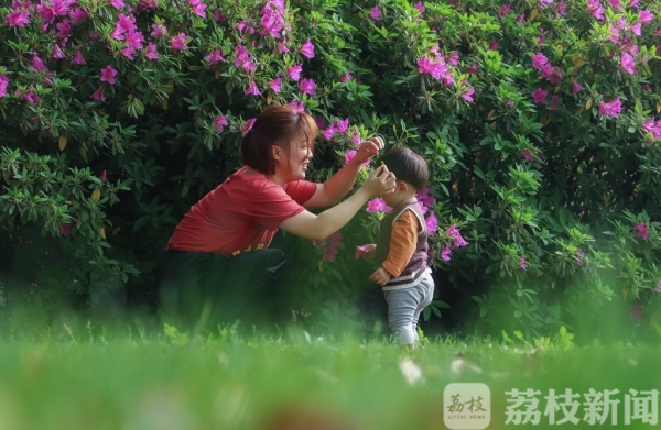 随着“五一”假期的临近,这两天,江苏句容葛仙湖公园里的一株株杜鹃花竞相绽放,俏丽多姿,灿若云霞,人们沉醉其中赏花拍照,感受这暮春时节最艳丽的色彩。
