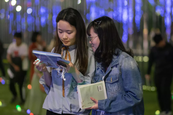 “在春风沉醉的夜晚,伴着音乐和有趣的灵魂偶遇,没有比这更美好的事情了。”南京大学仙林校区信息管理专业大二学生黄珊特意坐一个半小时地铁前来换书,“我带了一本张悦然的《茧》和两本《暮光之城》,我也翻了很多现场书籍,发现不少书的原主人都留有手写明信片,读这些温暖的文字,就像遇到一位久违的老朋友。”