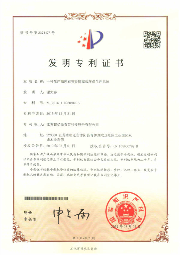 发明了石英砂超声波净洗等四项关键技术,