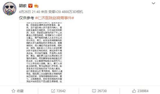 4月27日上午,中国医师协会发布文章称,综观该起事件,认为: