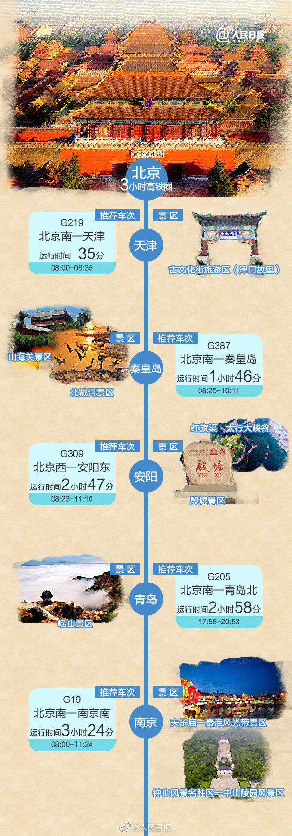 这个五一假期,全国铁路预计发送旅客6820万人次。你的出游计划安排上了吗?据统计,中短途国内游和周边游线路最受欢迎,高铁、动车最热门!北京、上海、西安、广州、重庆…这些城市的“3小时高铁圈”都包括哪里?假期马上到了,快约上小伙伴,一起坐高铁去旅游吧!