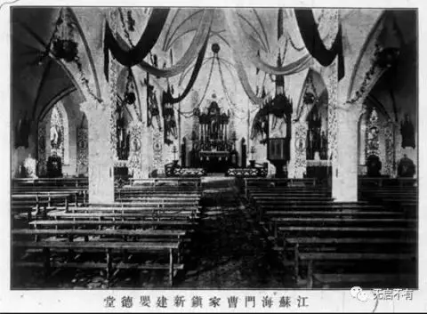曹家镇小德肋撒堂始建于1933年,全称为天主教海门教区曹家镇婴仿耶稣德肋撒堂,由清末状元、著名教育实业政治家张謇先生的副手、大生二厂创始人郁岂生先生之子郁震东先生捐助,聘请德国友人设计建造。