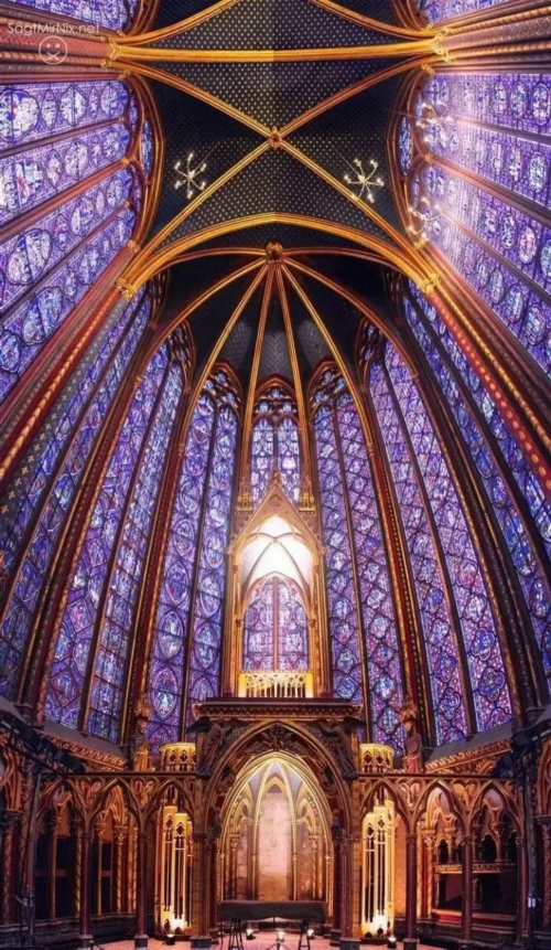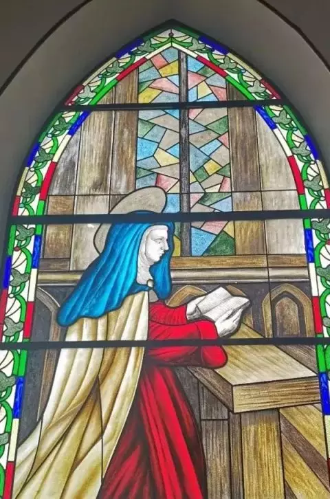 步入大堂,两侧的扇形窗户是耶稣从诞生到受难的一组玻璃彩绘画。这一小块一小块烧制好的玻璃镶嵌在窗上,色彩明艳,营造出奇妙的光线效果,仿佛一部无字圣经,充满浓厚的宗教气息。