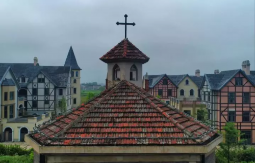 曹家镇小德肋撒堂的建筑,是典型的哥特式风格。红瓦、钟楼、拱门,每一个细节都精巧至极。穹顶上耸然立着金色十字,给人以神秘、崇高的强烈情感,尽显哥特式教堂的无穷魅力。
