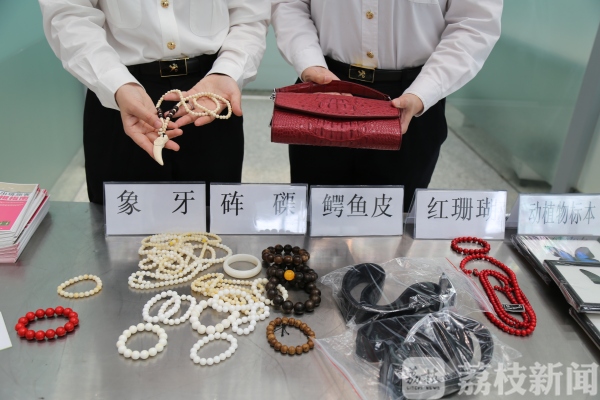 活动现场,旅客在海关查获的濒危野生动植物及其制品展台前驻足停留,学习濒危野生动植物保护知识,参观海关查获的相关物品。“看了展示才知道随手购买的装饰品对于野生动物的伤害,以后不仅我不会购买,还要劝导亲朋好友都不要购买这类装饰品,”旅客黄某指着展台中的象牙项链说。