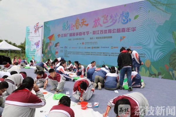 4月27日的南京东郊奥莱,各式各样的风筝迎风飞扬,家长带着孩子们在草坪上奔跑笑闹,享受美好的亲子时光。江苏省广播电视总台副台长李声与南京东郊奥莱总经理范莹为巨龙风筝点睛,并宣布2019江苏广播风筝嘉年华暨江苏体育公益嘉年华正式启动!来自宇花小学的孩子们旋转着空竹,来自燕子矶中学、第二十七中学的学生代表组成的方阵舞动起手中的风筝,为持续一整天,集明星DJ表演互动、爱心公益市集、各项游玩体验于一体的嘉年华活动正式拉开帷幕!