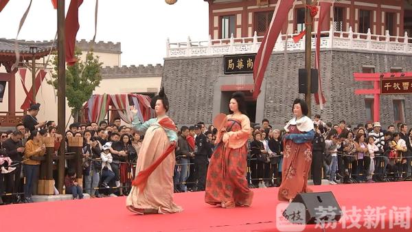4月27号下午,一场展现唐朝服饰艺术的实景时装秀亮相苏州华谊兄弟电影世界。身着五颜六色的唐衣模特,宛如从敦煌壁画走下来,为我们再现盛唐气象。