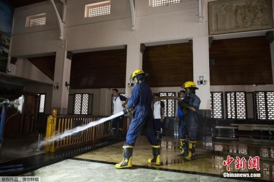 当地时间2019年4月27日,斯里兰卡科伦坡,在爆炸发生近一周之后,斯里兰卡政府第一次对教堂内部进行了全面的清理。