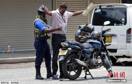 资料图:当地时间2019年4月25日,斯里兰卡士兵、警察在街头进行安检,搜查来往人员车辆。