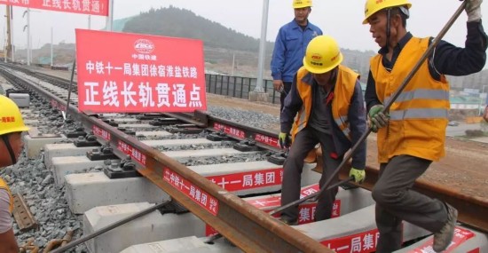 当天在铺设现场记者看到,工人正在盐徐铁路盐城综合客运枢纽南咽喉岔区忙碌着,他们有的在吊装岔枕,有的在放线,有的用撬棍顶起岔枕方便工友紧固螺栓,相互协作十分密切。