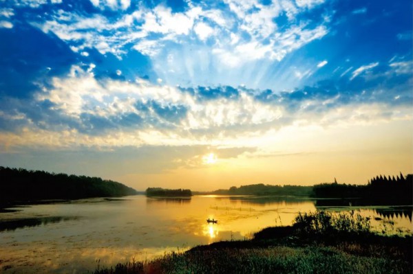骆马湖的夕阳非常美,黄昏时分遍洒金辉,湖岸线在朦胧的金色光晕中,变得更加迷人了。沿着湖畔骑行或漫步,目之所及皆是水面,在漫天霞光中,看落日渐渐变淡,然后消失在湖岸线以下,这种感觉特别美好。