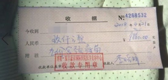 △图为疫苗收款确认单