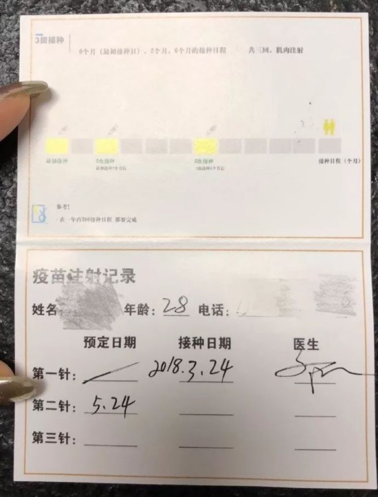 △图为疫苗接种卡
