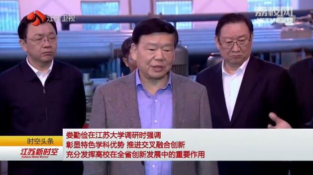 娄勤俭在调研中强调,高校是江苏创新发展的重要资源,要大力支持省内高校开展跨学科交叉融合创新,特别是抓住计算机互联网技术从先导性变为普适性的重大机遇,努力推动更多颠覆性创新。要大力支持省内高校具有国家级水平的实验室加快发展,更好促进应用基础研究、前沿技术研究与产业关键技术攻关紧密衔接,促进优势技术成果转化与战略性新兴产业培育紧密衔接。娄勤俭希望江苏大学努力保持特色、办出特色、彰显特色,在农业机械、师范教育等领域进一步发挥特色优势,培养造就更多高素质专业人才,不断满足人民群众对优质高等教育的需求,为建设“强富美高”新江苏作出更大贡献。