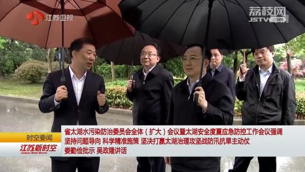 会前,吴政隆深入检查太湖度夏、度汛准备工作,并乘船察看水质及藻情。他强调,太湖"藻型生境"尚未根本改变,要树牢底线思维,决不能有丝毫松懈,严密监测藻情、草情、水情、汛情,统筹抓好水生态、水资源、水环境、水安全,系统治理、综合治理,确保太湖安全度夏、安全度汛,以只争朝夕的精神、持之以恒的坚守,坚决打赢太湖治理攻坚战,以新担当新作为唱响新时代的"太湖美"。