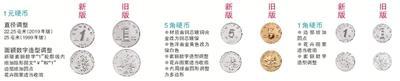 此外,2019年版第五套人民币1元硬币直径由25毫米调整为22.25毫米。1元硬币规格调整后,直径缩小11%,便于公众携带使用。