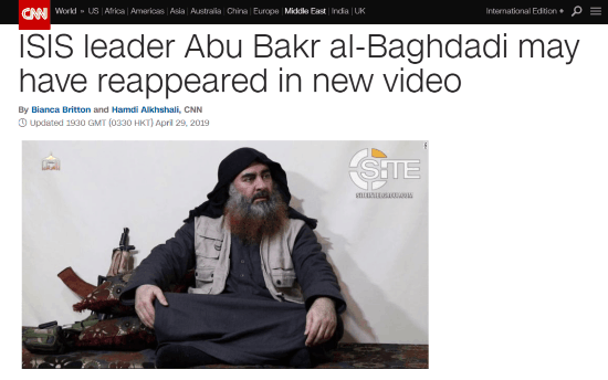 CNN称,如果这段视频是真的,这将是自2014年7月后,巴格达迪首次现身。自那以后,IS屡次发布声称来自巴格达迪的各种音频信息,最近一次是在2018年8月。