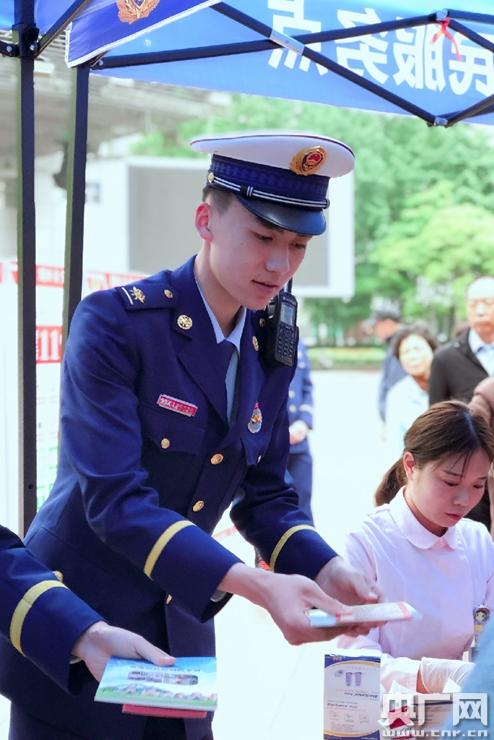 上海消防总队车站中队每月20日在南京路设为民服务点。(央广网记者陈锐海 摄)