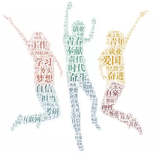 当然更多的是在学校努力学习,蓄积力量。我们看到,青春、爱国、奋斗、自信、时代、梦想等成为大学生群像的关键词,同时压力、困惑等也位列其中,这些高频词共同绘就了新时代大学生的精神图谱。
