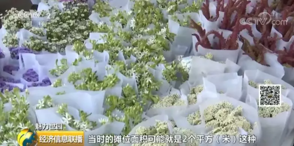 昆明联合花卉有限公司总经理官超:当时的摊位面积可能就2平方,鲜花随便摆到桶里或堆在地上 。