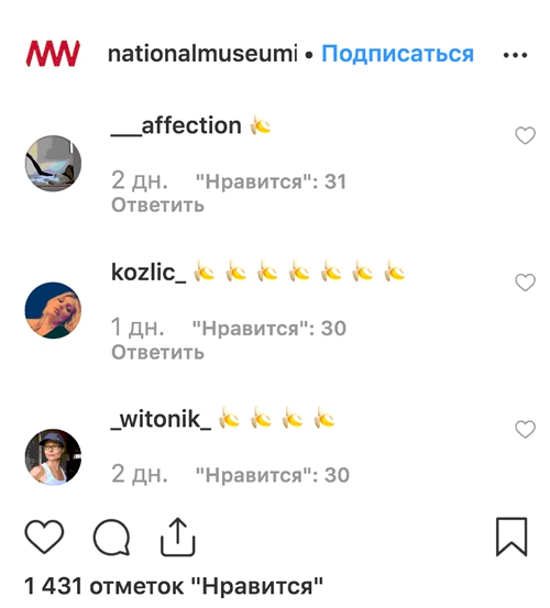 还有许多网友跑到华沙国家博物馆Instagram的评论区狂刷香蕉表情,以示不满。