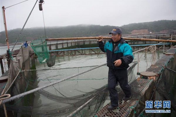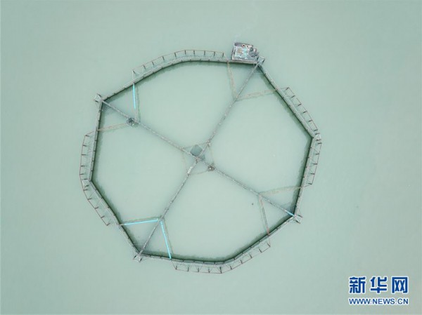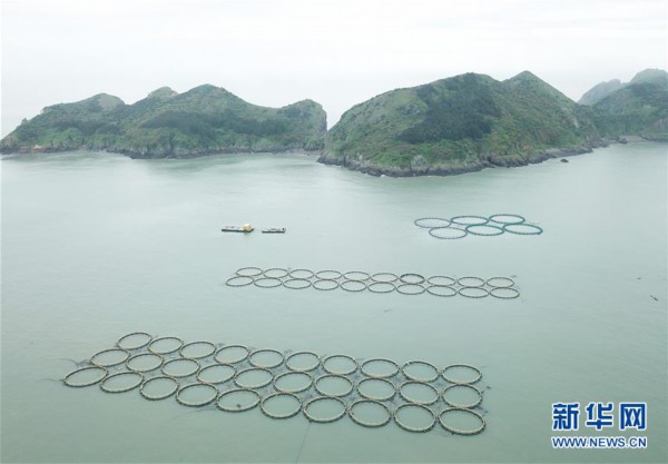大陈岛附近海面上,铜合金网“编织”的巨型海上养殖平台十分壮观。