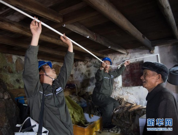 大陈供电所工作人员为岛上居民更新电路(4月19日摄)。新华社记者 翁忻旸 摄