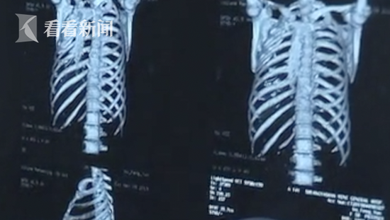 双鸭山市煤炭总医院胸外科医生常啸岩:“目前看她的片子是3根肋骨骨折,还有轻微的肺挫伤,具体的根数还要等一个月的时候,复查胸部CT更清楚一些,根数能具体定准。”