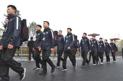 在世园会内列队“巡逻”的快递小哥。快递公司世园会站点供图