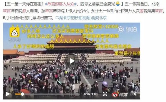 5月1日,南京各大景区人气爆满。截至下午4点,南京七大景区总接待量81万人次。其中,夫子庙景区接待39万人次;中山陵景区接待16.5万人次;总统府景区接待3.6万人次;玄武湖景区接待15万人次;雨花台景区接待4万人次;牛首山文化旅游区接待2.06万人次;金陵大报恩寺遗址公园接待0.81万人次。