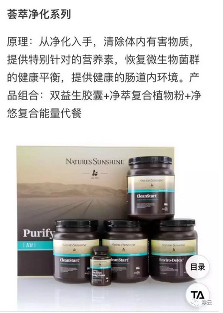 加入“自然阳光”不到一年即已债台高筑的刘安向记者介绍,这些“保健品”在自然阳光的宣传中具有多种神奇的功效,“自然阳光的人说,他们的产品可以调节个人新陈代谢,还能治疗便秘、高血糖、高血压、心脑血管疾病等,这些普遍多发的疾病总会有人遇到,所以有可能不少人就是冲着治病加入了进来。但据我观察,一套产品吃下来,有的人会拉肚子,有的人会便秘。对于这些不良反应,自然阳光的营养师会对我们讲‘都是个体差异问题,吃的不够,多吃一两年更能见效果’,还建议我们禁碳水,要吃高蛋白、高纤维食物。我们不仅要继续买那些产品,还要买那些他们提出要吃的昂贵肉类等食品,这又是一笔不小的开支。”