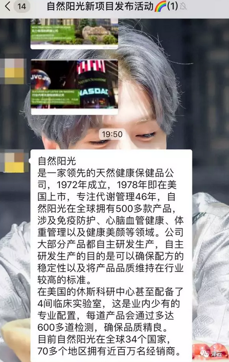 刘安的“上级”称自然阳光是一家天然健康保健品公司