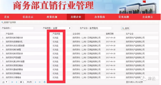 自然阳光仅有11种化妆品在直销产品备案列表中