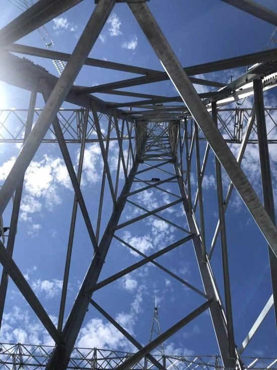 国网的直流超高压输电线路需要隔几十公里建一座输电铁塔,直流电铁塔比交流电的构造稍微简化,但也是很大的大家伙。