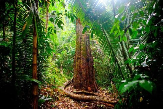 当试伐的第一棵树倒下的时候,阳光仿佛利剑一般从那棵树原来的位置上空笔直地照射到了大家的身上,雨林里一下子明亮了许多。峰林正在面对面地和另一名工程师说话,对方的瞳仁一下子变亮了,让他清晰地感觉到了光线的变化。